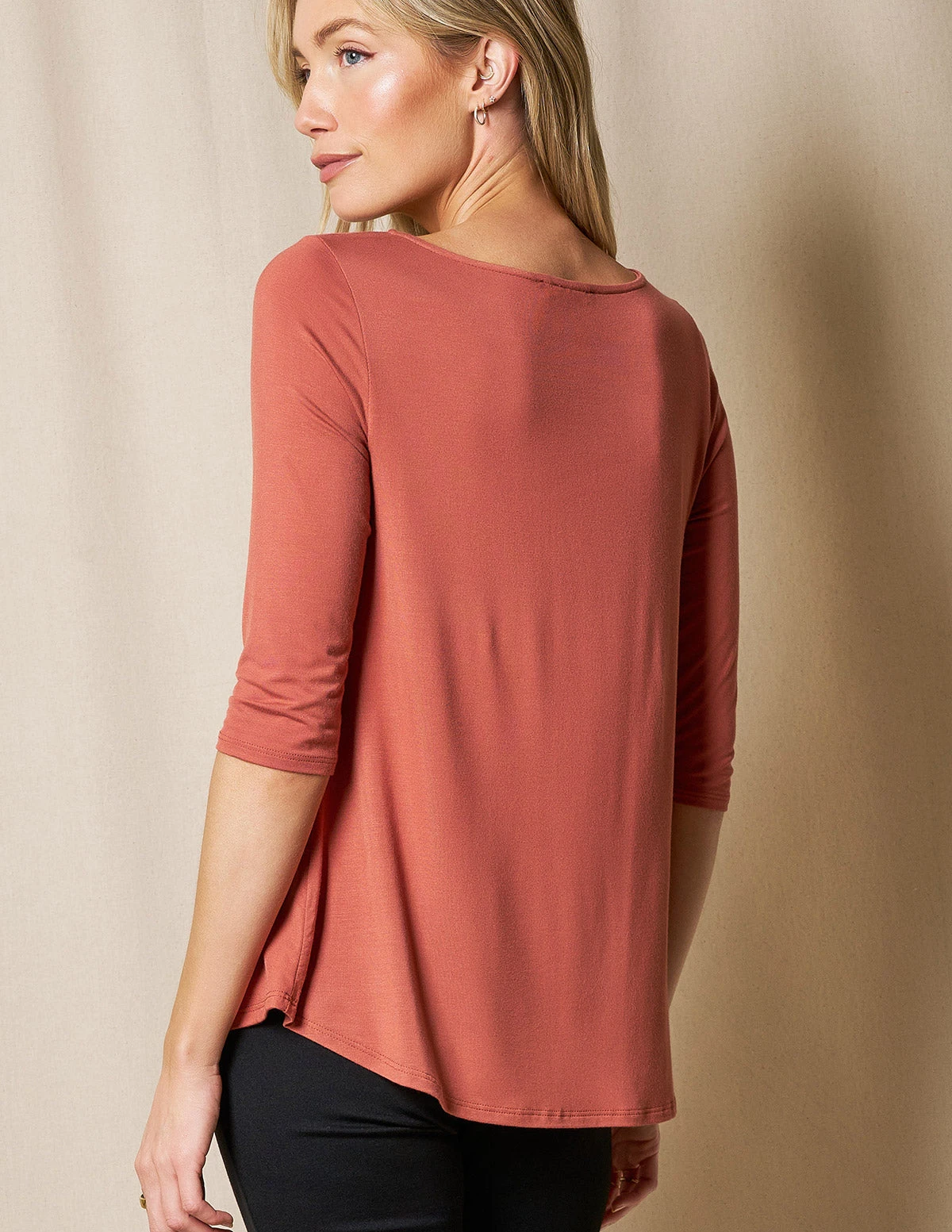 Nothing beats our Bamboo 3/4 Sleeve Tee. Soft bamboo knit with just a bit of spandex shapes this all-day favorite. Bamboo is our sustainable choice – antibacterial, breathable, and soft on sensitive skin.Â