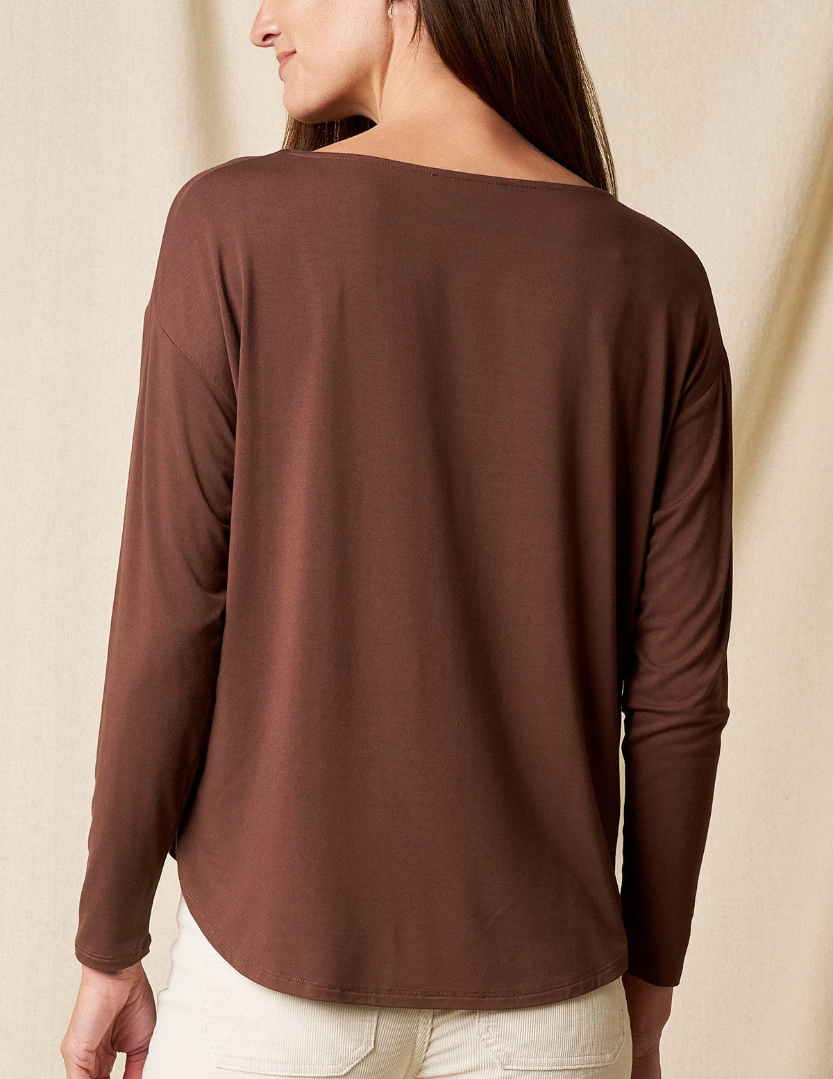 Nothing beats our Bamboo Dolman Long Sleeve Tee, an everyday, all-day favorite. Sustainably crafted from OCS and OEKO-Tex-certified, non-toxic Tanboocel bamboo fabric. Slip on and look your best, soft bamboo knit has a soft touch with a bit of spandex for shaping. Bamboo is our sustainable choice – antibacterial, breathable, and soft on sensitive skin.