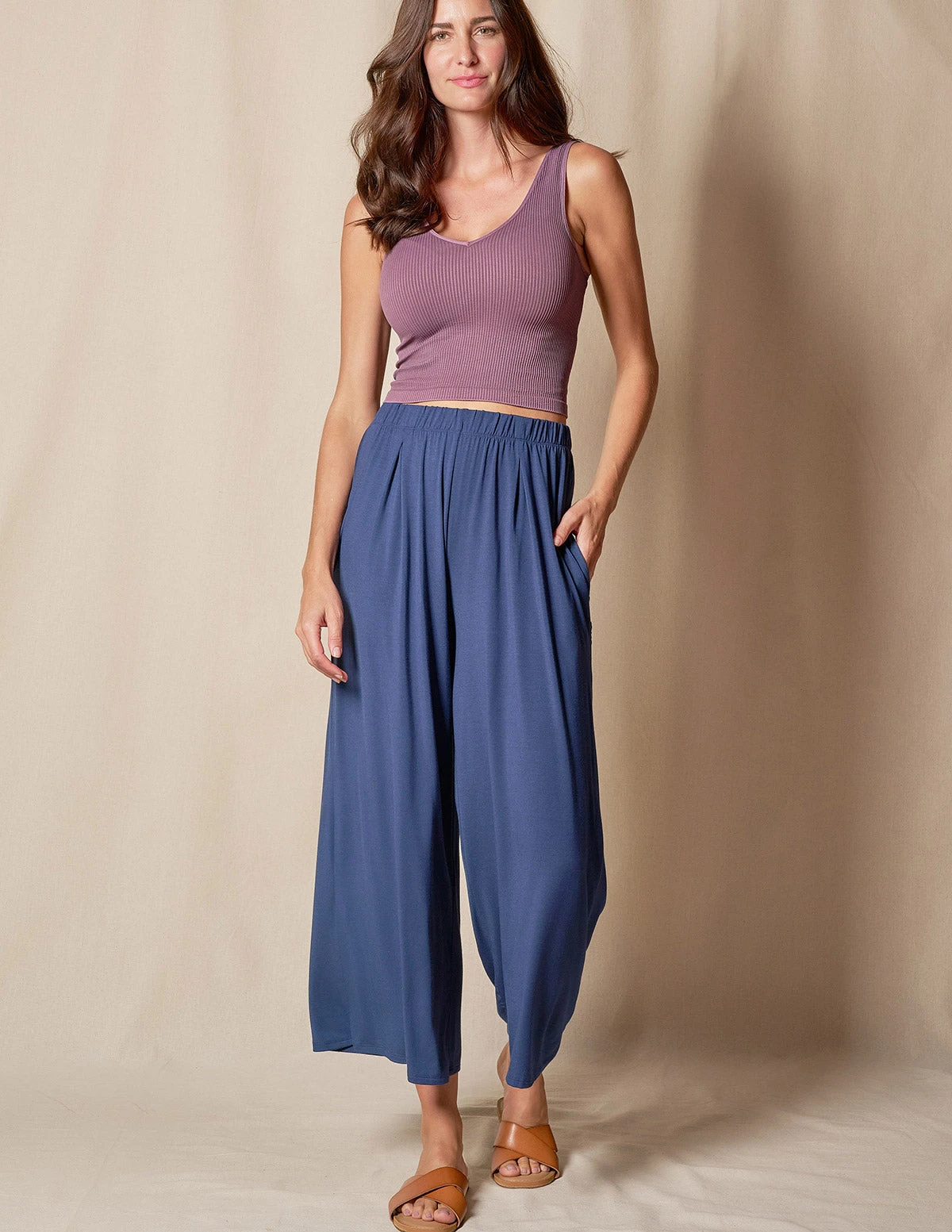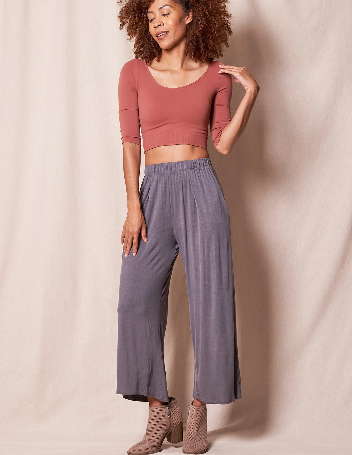 Bamboo Flowy Crop Pants skims easily over the body with a mid-rise elasticized waistband and trendy cropped ankle-length hem. Eco-friendly, sustainable, and super soft on sensitive skin.