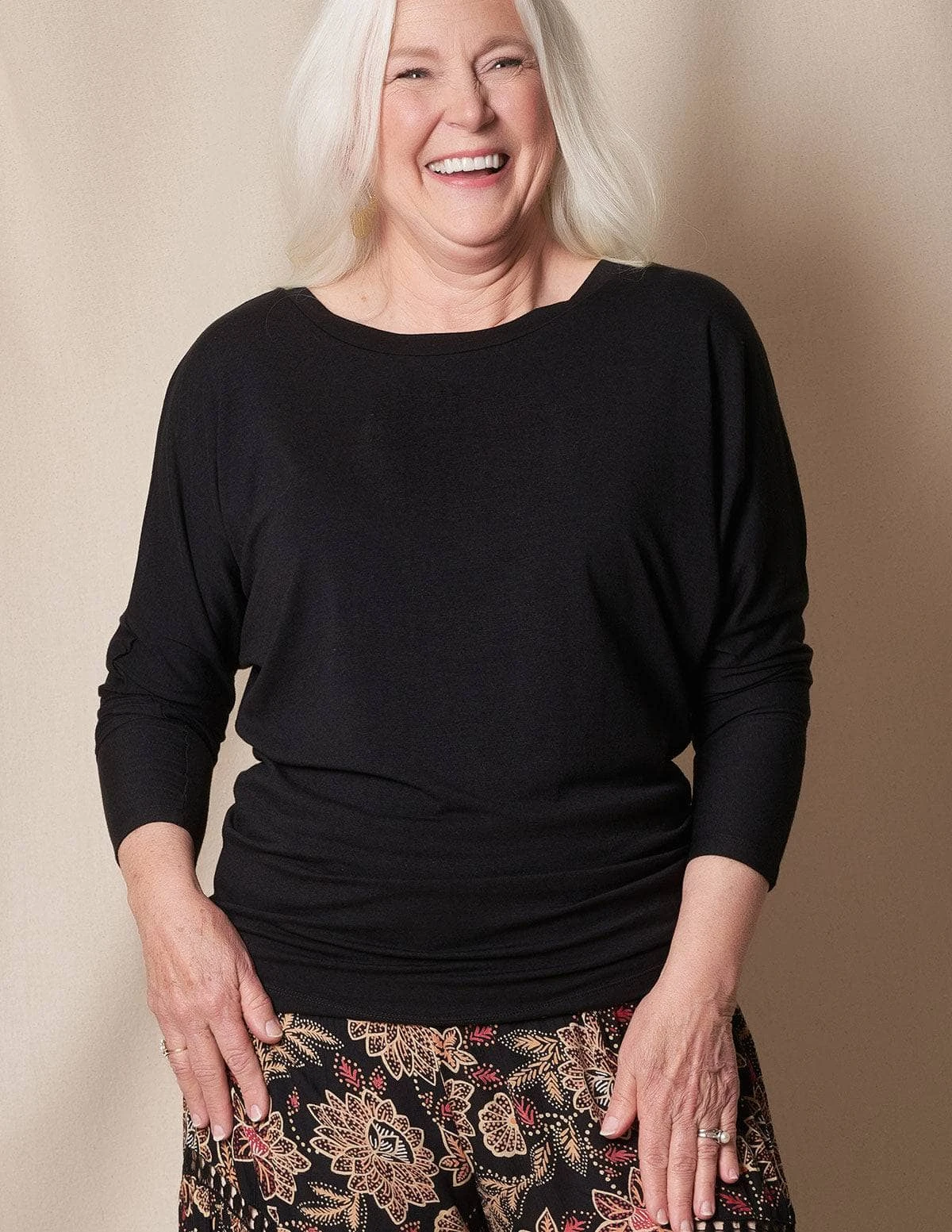 Easy fit plus our best bamboo blend – what’s not to love? Long sleeves keep the chill at while the elongated hem that tapers at the waist lets you play with the length by ruching around the hips.