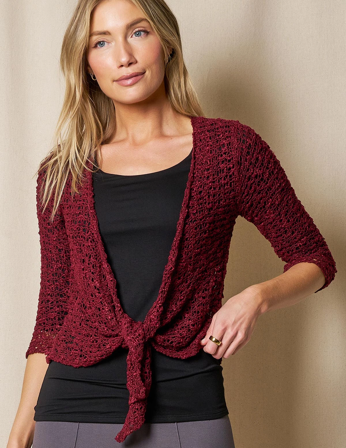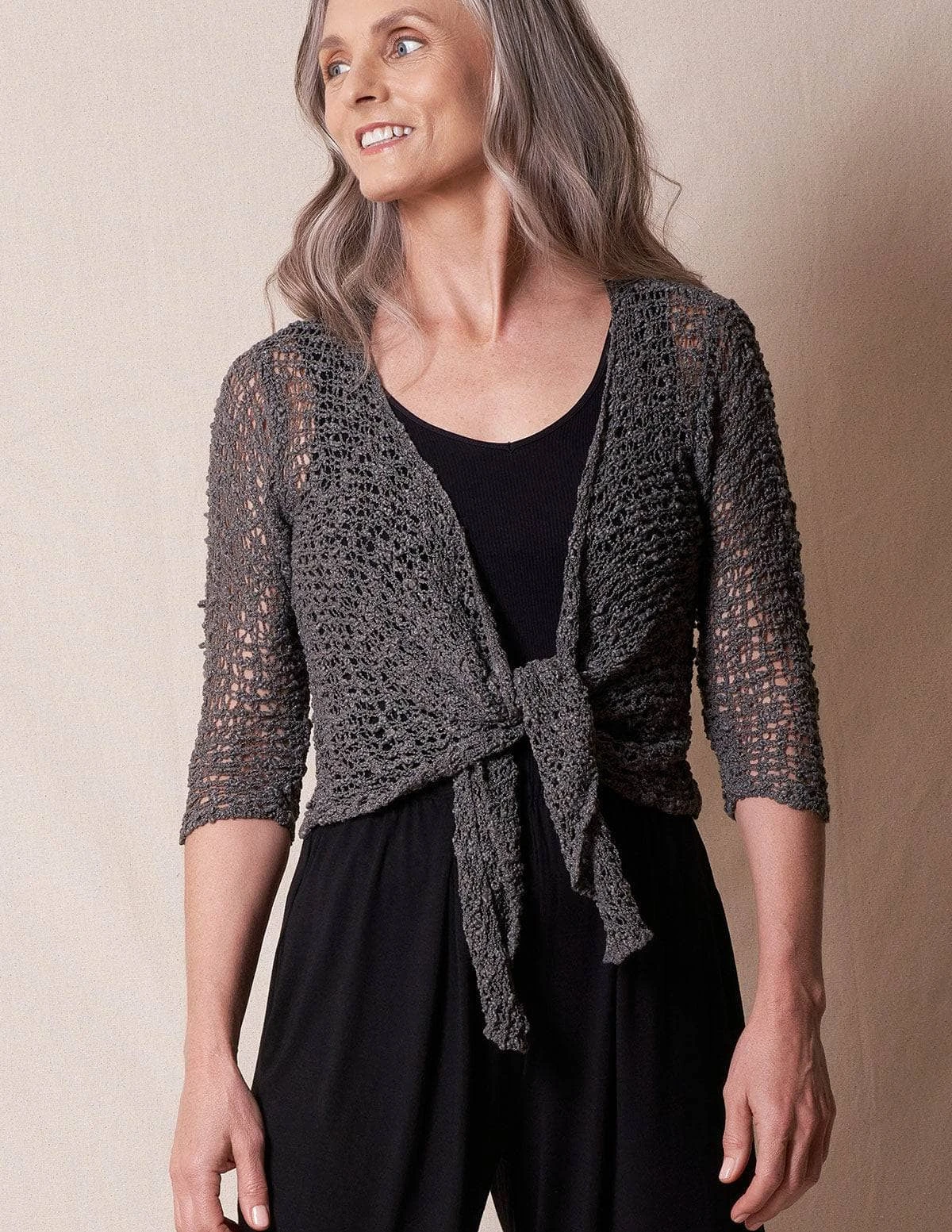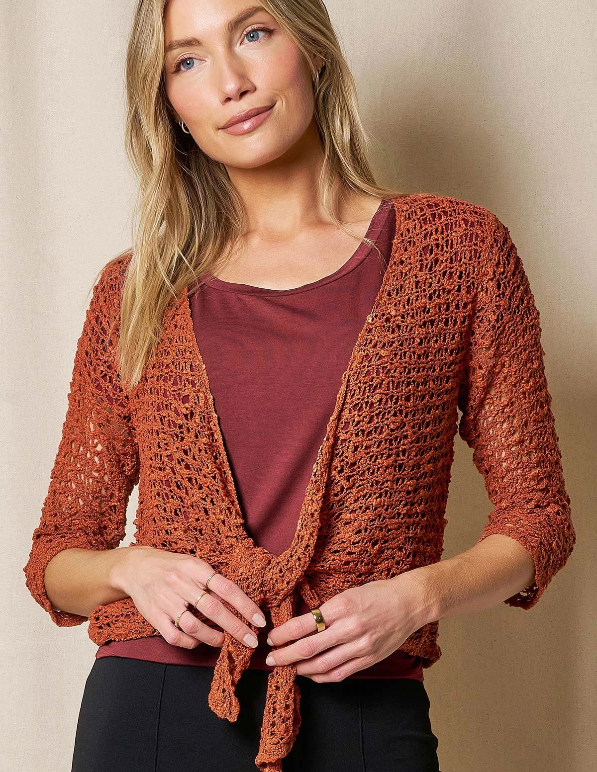 Handwoven Riva Knit Crop slides over tanks, crops, and tees when you need just a little bit of extra coverage. Wear with tied or open front.