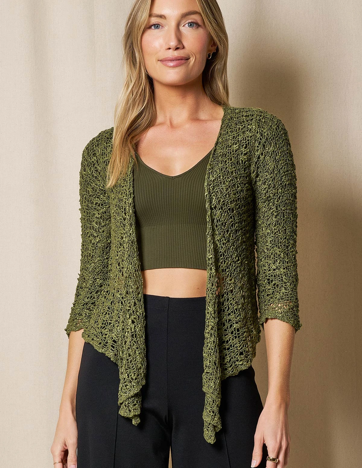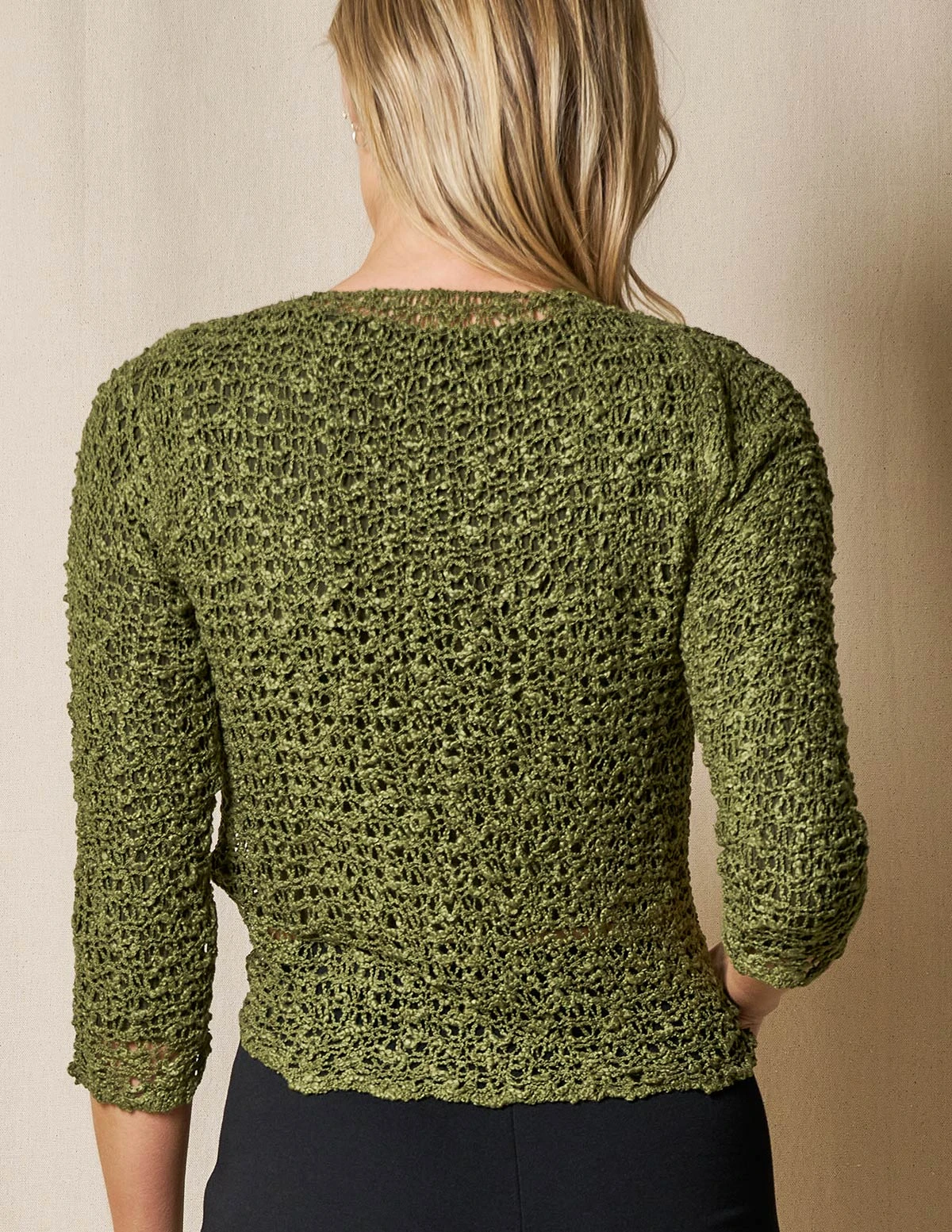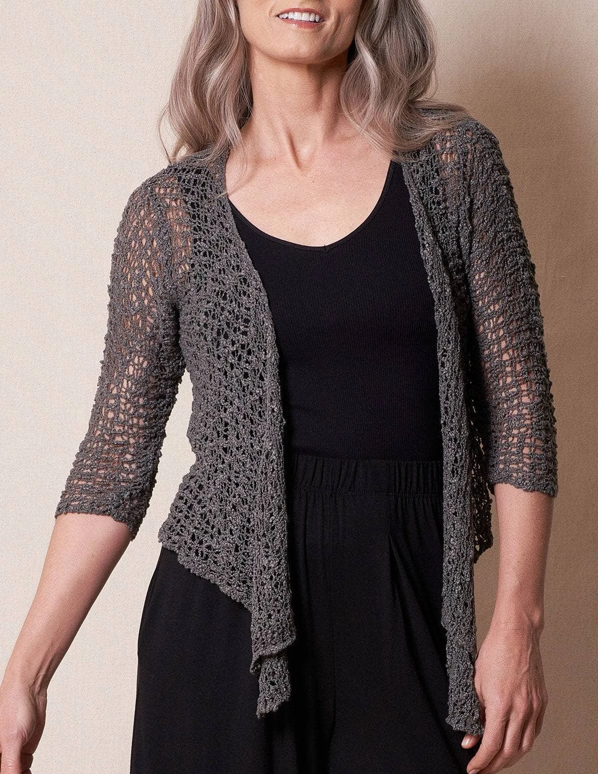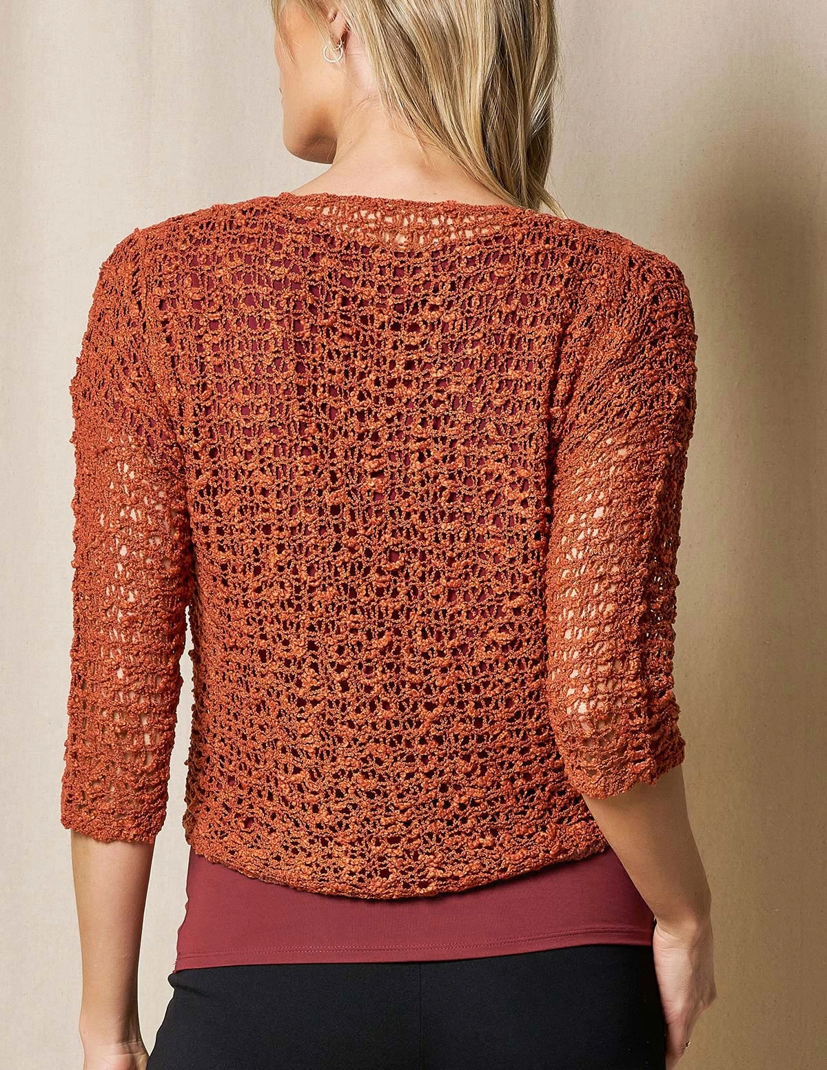 Handwoven Riva Knit Crop slides over tanks, crops, and tees when you need just a little bit of extra coverage. Wear with tied or open front.