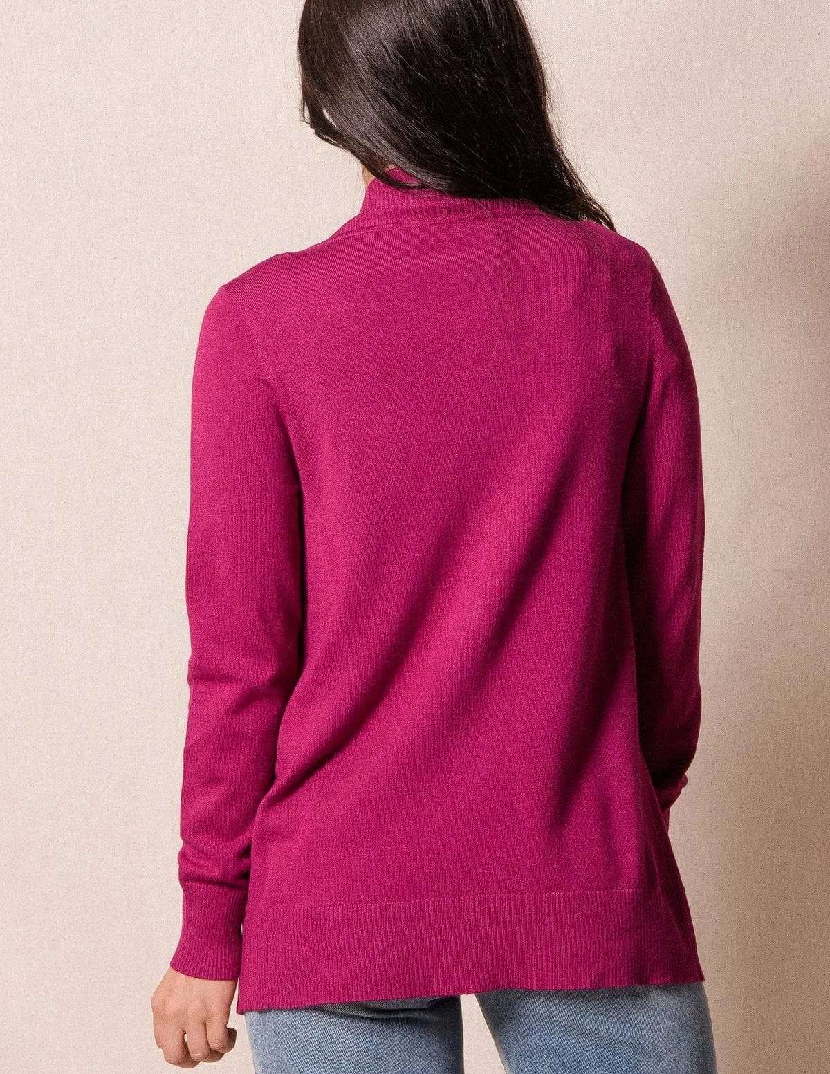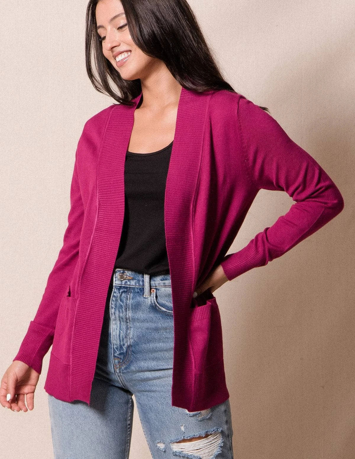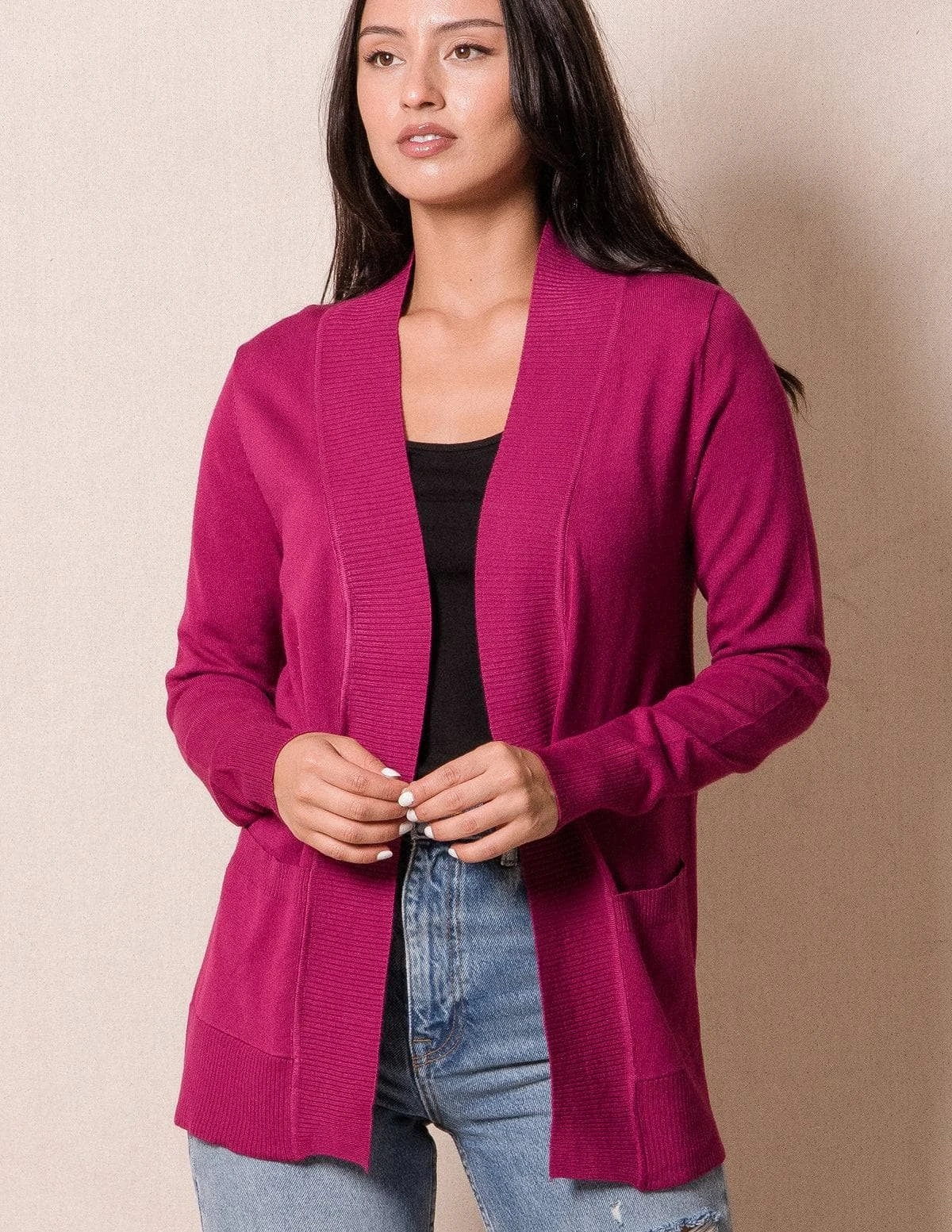 Add a pop of color to any look with our Retro Cardigan Wrap. Soft and cozy all-season sweater drapes the body to create a smooth silhouette. Classic open-front cardigan styling with two patch pockets.Â